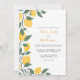 Um convite moderno para o casamento em letras caligráficas e limões frescos e folhas de lado. Você pode personalizar os detalhes.