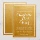 Adicione um toque moderno e elegante ao seu convite de casamento com um estilo de caligrafia de letra floreada sobre um fundo metálico dourado com tipo e borda branca sobreposta.