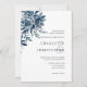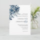Convite de casamento elegante com um arranjo de flor dessaturado azul de índigo em aquarela. Florais pintados de forma grosseira com arte em linha.
