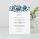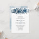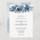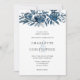 Convite de casamento elegante que inclui um arranjo de várzea de flores dessaturado azul de índigo em aquarela. Flores pintadas vagamente com arte fina.