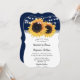 Este convite de casamento floral rústico com girassóis contra uma toca azul marinho e um fundo de renda é perfeito para convidar seus convidados para sua festa de casamento azul-marinho inspirada pelos girassóis.