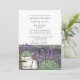 Convite de Casamento Floral Lavanda Rústica Vintage. Pais. Um Local. Madeira e Luzes. Tipografia preta.