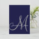 Elegante Marinho Blue Wedding Convite Monograma Design por Elke Clarke ©2008. Personalize com seu monograma, nomes e cores de casamento. Adicione todas as suas informações de casamento na parte traseira do cartão usando os prompts de menu fáceis de usar do Zazzle. Vem com o envelope branco do vazio.