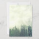 Este convite de casamento rústico apresenta uma bela cor d'água de fundo de pinheiros verdes de montanha envoltos em névoa amarela ou verde ou neblina. O texto apresenta os nomes do casal com destaques elegantes da caligrafia. Perfeito para um país, exterior, destino selvagem ou cerimônia de inverno.