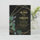 O quadro geométrico verde e dourado sai do Cartão de Convite de Casamento Nosso cartão de casamento versátil se mistura perfeitamente com qualquer tema de casamento. A combinação elegante de uma estrutura geométrica dourada, folhas verdes e douradas, e um fundo de tinta verde-clara garante a harmonização perfeita com as configurações modernas e tradicionais. Quer você esteja planejando uma cerimônia íntima de jardim ou um caso de grande salão, esta carta adiciona sem esforço um toque de beleza eterno.