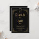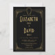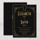 Este convite de casamento art déco dos anos 1920 preto e dourado pode ser personalizado com suas informações em tipografia elegante e seus iniciais do monograma no verso. Projetado por Thisisnotme©