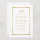 Convide seus convidados de casamento em estilo com este convite simples, elegante e personalizado. O design moderno apresenta as iniciais falsas do monograma de ouro em um roteiro de ouro falso, juntamente com todos os detalhes do seu casamento, para personalizar bordado com um quadro de ouro falso brilhante em um simples fundo branco. Os melhores votos para o seu casamento e casamento! Desenhada por Susan Coffey.