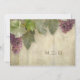 design de ilustração do Cartão de Convite em Papel 5x7, ideal para casamentos no estilo exterior de Verão, outono ou outono, no estilo de campo exterior, no local de uma adega. Lindas uvas de vinho tinto e suas folhas são obras de arte originais pintadas manualmente por Audrey Jeanne Roberts. Eles foram colocados sobre um fundo de conselho de cerca de madeira quente, vestida e aflita, que é antiquado com textura de excelente e sutis elementos de rolagem decorativa da impressora de ornamentação que acrescentam um toque de elegância. A mistura perfeita de um tema formal e confortável, elegante e de tendências, mas um eterno clássico de coleção de convites para casamento que será tão bonito quando você olhar para seu vigésimo quinto aniversário! Há um convite completo para o casamento, com produtos coordenadores para chás de panela, chás casais, jantas de ensaio, cerimônias e recepções de casamento.