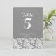 Números de mesa para um casamento rústico com cinza e renda. O design é de dois lados. Você pode adicionar cada número ao carrinho e impressão de ambos os lados. Todo texto, estilo e posicionamento são editáveis.