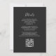A borda esquerda deste elegante convite de casamento moderno apresenta um marinho azul de aquarela agata bordada com falso brilho prateado. O texto personalizável combina manuscritos, placas de impressão e fontes itálicas em cinzas prateadas claras em um fundo de cinza de carvão negro. O verso fornece espaço para detalhes do casamento em um fundo sólido fora do preto, junto com um código QR que os convidados podem digitalizar para visitar seu site e RSVP, o que economiza o custo de imprimir e enviar cartões RSVP separados.