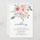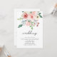 Convite de casamento de Script de Cor de Rosa Moderna. Adicione seu código QR ao seu site de casamento no verso faz com que esta seja uma opção conveniente para seus convidados para RSVP e veja todos os detalhes sem a necessidade de RSVP separado e cartões de detalhes. Um elegante estilo de conjunto informal para o cabeçalho, com todos os detalhes elegantemente pequenos sob o fio, e florais de cor d'água e cor de pêssego junto ao topo. Personalize facilmente com suas informações.