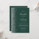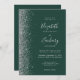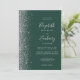 A margem esquerda deste elegante convite de casamento moderno apresenta um design de cintilação de prata. O texto personalizável combina a escrita manual de cinzas prateadas, fontes copperplate e itálico em um fundo verde esmeralda. O verso fornece espaço para detalhes do casamento em um fundo verde esmeralda sólido, junto com um código QR que os convidados podem digitalizar para visitar seu site e RSVP, o que economiza o custo de imprimir e enviar cartões RSVP separados.