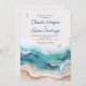 Um elegante design de verão para sua praia ou casamento de destino! As ondas e aves marinhas que caem e a escrita moderna dão a estas o perfeito toque escapista para a maior aventura da sua vida. Excelente para um casamento no México. Solicite seus convites impressos e suprimentos de festas ou faça o download de seus convites digitais agora por um dia que eles nunca esquecerão!