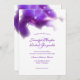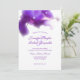 Um convite para o casamento floral elegante com foto de orquídea roxa no fundo e nos detalhes da recepção impressos no verso. Um cheio alternativo barato de elegância e beleza. Mude a modelo de texto com seus detalhes de casamento ou festa de noivado.