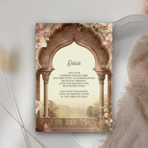 Incêndio aos seus convidados com este elegante convite de casamento, com lindos elefantes e arcos antigos. Basta adicionar os detalhes do seu evento neste modelo fácil de usar para torná-lo um convite de tipo único.