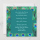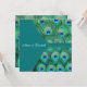 Convite de casamento quadrado com elegantes penas de pavão esmeralda, azul real e azul turquesa. Personalize com a sua escolha de estilo de letra e cor da fonte.