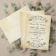 Nadinhos negros decorativos e flores enquadram este elegante design de convite para casamento da tipografia vintage. O fundo do marfim rústico é impresso com uma aparência texturizada de papel pergaminho envelhecido. Personalize o texto personalizado do na moda para sua cerimônia de casamento e recepção.