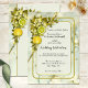 Um convite de casamento de cor d'água que inclui frutas de citros em folhas verdes com flores. Bonita para um casamento de pomar de limão ou outra celebração temida de citros.