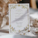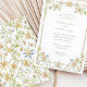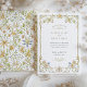Este convite para o casamento apresenta uma delicada estrutura de ouro adornada com flores silvestres e curvas botânicas moles. O trabalho de arte floral inclui pincéis de pincel, azuis de pincel, amarelos da manteiga e verduras de folhas, todas ilustradas com charme de vintage e um toque leve pintado à mão. A design de quadro tem uma sensação aberta e arejada, oferecendo uma apresentação nova e elegante para casamentos românticos. A parte de trás do cartão está cheia de uma composição de flor selvagem com um padrão ricamente elevado, ecoando o tema natural num formato mais caprichoso e de forma livre. Lírios estilizados, papoilas, margaridas, e folhas se unem num design lúdico, mas refinado. Este convite é ideal para primavera ou casamentos de verão, cerimônias ao ar livre ou casais que amam detalhes florais com um talento antigo.
