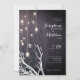 Convocação De Casamento Do Branch Branco De Corda Vertical Cristal. O Moderno Elegante Winter e a design de outono apresentam galhos manzanitas brancos e pretos com cordas de cristal sobre um fundo de pedra verde-roxa. Personalize-o com seus detalhes e exclua ou adicione textos.