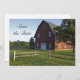 Faça um tom relaxado para a sua cerimônia de casamento com o encantador Red Barn e Fence Country Wedding Salve o Anúncio de Data. Este castigo casual, porém clássico, do rancho mantém o anúncio da data com uma fotografia quintal de fazenda rural de um celeiro vermelho rústico e cerca de madeira no nascer do sol. Inpo perfeito para um evento informal de festa de celeiro.