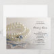 Convide convidados com o bonito Blue Vintage Lace, Pérolas e Convite para Casamento Diamond Ring. Este convite de casamento personalizado elegante apresenta uma fotografia de um colar de pérolas branco, anel de noivado de diamante e um lenço azul e branco aparado de renda e um lenço branco e um fundo branco de cetim.