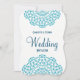 Muito na moda e convite elegante em azul e branco com um design de padrão bonito, Estes convites de casamento estão prontos para você personalizar com seus próprios detalhes de celebração de festa de casamento sem custo extra.