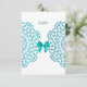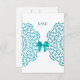 Cartão RSVP de convite muito na moda e elegante em azul e branco lacrimogêneo com um bonito lugar e design de fita.