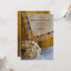 Convidem convidados para os vossos futuros núpcias casuais, mas clássicos, com o encantador Campo Lace e Flores Convite para Casamento Barn. Este convite à apresentação de casamentos rusticais, informal e elegante, apresenta uma fotografia floral tênue de madeira de celeiro castanho, um lenço branco vintage aparado de linho, flor seca de flor de hydrangea, colar de pérolas e véu branco de brasa.