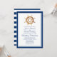 As faixas azuis de marinho e o volante de aquarela criam um aspecto náutico clássico, ideal para o casamento náutico. Combinação de fontes moderna e elegante. Listras azuis profundas no fundo.