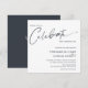 Simples "celebre" moderno minimalista com azul-cinza escuro sólido e flores silvestres em um jarro em branco no verso do convite. Mensagem-me se precisar de ajuda ou tiver alguma solicitação especial.