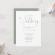 Este convite de casamento com elegante escrita em verde salvia pode ser personalizado com todas as informações especiais do seu dia de casamento no verso, incluindo seu RSVP, acomodação e detalhes adicionais. Projetado por Thisisnotme©