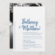 Linhas limpas modernas texto simples clássico azul e branco deixado variava verticalmente e negrito em convites de casamento de texto de caligrafia. Perfeito para um casamento simples e moderno. Edite este convite com seus próprios nomes, detalhes do casamento e sua própria foto de casais no verso ou remova e tenha um fundo azul. Outros itens correspondentes estão disponíveis. Projetado por www.mylittleedenweddings.com