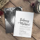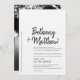 Linhas limpas modernas texto simples em preto e branco deixado variava verticalmente e negrito em convites de casamento para escrituras de caligrafia. Perfeito para um casamento simples e moderno. Edite este convite com seus próprios nomes, detalhes de casamento e sua própria foto de casais no verso. Outros itens correspondentes estão disponíveis. Projetado por www.mylittleedenweddings.com