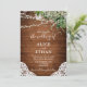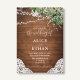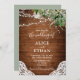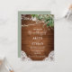 Entra num mundo de charme rústico com o nosso belo convite de casamento. Colocada sobre um pano de fundo da madeira rústica, essa design apresenta um arranjo delicado de folhas de cor d'água verde, suavemente iluminadas por lanternas no topo para um toque encantador. A parte inferior do cartão é adornada com uma ilustração requintada do local branco, melhorando o seu apelo vintage. Dentro, a combinação harmoniosa do roteiro moderno e da fonte serif clássica desdobra elegantemente seus detalhes de casamento, criando um convite tão memorável quanto seu dia especial.