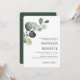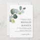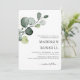Simples e elegante verde de eucalipto único com spray de ouro para convite de casamento. Tipografia clássica e cursiva alinhada à direita. Adicione o nome da noiva e do noivo no verso. Itens correspondentes nesta coleção.