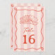 Ilustração floral de arte em linha vermelha sobre fundo de faixa rosa com texto vermelho e quadro desenhado à mão.