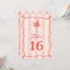 Ilustração de palmeira de arte em linha vermelha sobre fundo de faixa rosa com texto vermelho e moldura ondulada desenhada à mão.