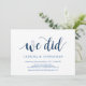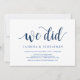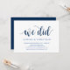 Este convite com tema Rústico (Nós fizemos), na cor azul-marinho de letra personalizada, é perfeito para o anúncio/celebração do seu casamento. Adicione seus detalhes na fonte preta correspondente. (pode alterar a cor da fonte para outras cores personalizadas)