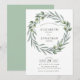 Tema verde com cor d'água verde folhagem. O texto e as cores podem ser personalizados para corresponder ao tema do casamento.