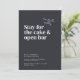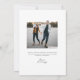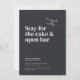 O cartão de design Belmont mostra uma grande tipografia que diz "Venha para o casamento. Fique pelo bolo e bar aberto." Como vocês olham abaixo, os detalhes essenciais da comemoração são graciosamente apresentados em uma pequena fonte de serifa clássica. O verso é uma canvas para outra bela foto do casal, permitindo um vislumbre de sua jornada compartilhada. Uma mensagem personalizada, pensadamente feita pelo casal, acrescenta um toque caloroso e íntimo, convidando os entes queridos a se juntarem à celebração de seu sindicato.