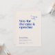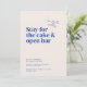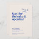 O cartão de design Belmont mostra uma grande tipografia que diz "Venha para o casamento. Fique pelo bolo e bar aberto." Como vocês olham abaixo, os detalhes essenciais da comemoração são graciosamente apresentados em uma pequena fonte de serifa clássica. O verso é uma canvas para outra bela foto do casal, permitindo um vislumbre de sua jornada compartilhada. Uma mensagem personalizada, pensadamente feita pelo casal, acrescenta um toque caloroso e íntimo, convidando os entes queridos a se juntarem à celebração de seu sindicato.