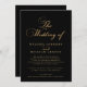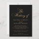 Linda Virtual Moderna Elegante Escrita Dourada Convocação para Casamento Negro. Design elegante apresenta tipografia dourada a preto. Personalize com o nome do noivo e do noivo, os detalhes do casamento e transmissão ao vivo. Visite nossa loja, Austen & Grace, para ver a suíte de casamento de cheio, produtos correspondentes e muito mais, e entre em contato conosco se você precisar de produtos adicionais de correspondência ou qualquer assistência: contact@austenandgrace.com
