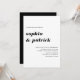 Este design de convite para casamento de eterno apresenta uma elegante tipografia retrô-itálica preta, inspirada em estilos de impressão do século médio. Perfeito para casais que buscam uma estética clássica, mas na moda, combina o encanto da safra com a personalização moderna. A paleta de cores mínima em preto-e-branco garante que ela se emparelha lindamente com qualquer tema de casamento, desde eventos formais de gravata negra até celebrações minimalistas quic. Personalize facilmente o texto para incluir seus nomes, data e detalhes do local usando os campos editáveis. Quer você esteja planejando um caso nostálgico ou simplesmente ame elegância antiga, este convite adiciona um toque de sofisticação ao seu grande dia.