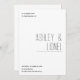 "O espaço branco é como o ar, é preciso que a design respire." Leve seu dia especial para o próximo nível com este cartão de convite para casamento ultra minimalista. O simples design apresenta um layout moderno limpo com tipografia cuidadosamente curada para acentuar o espaço neutro negativo do papel. Isto é perfeito para recém-casados que procuram uma celebração de casamento mais simplista. Este é um design de modelo onde as palavras e os detalhes são personalizáveis - basta clicar no botão "PERSONALIZAR" acima! Ou, imediatamente, envie aos seus amigos e entes queridos por meio de uma cópia de download digital!