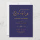 Convites Casamento com Tipografia Moderna Dourada Azul Simp