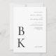 Faça uma declaração ousada, mas elegante com este design de convite para casamento moderno e limpo. Apresentando um grande monograma serif no canto inferior esquerdo, este layout é cuidadosamente balanceado com seus detalhes de casamento e nomes no canto superior direito. Os nomes dos casais são estilizados em uma fonte delicada, acrescentando um toque romântico suave à composição minimalista. Um espaço branco generoso traz uma sensação refinada e contemporânea. A parte traseira da placa apresenta uma borda retangular preta elegante definida a partir da borda para um efeito sutil de quadro. Uma versão menor do seu monograma adiciona um toque final de detalhes pessoais. Perfeito para casais que apreciam design eterno com uma borda moderna.