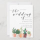 Adorável Watercolor Cactus Succulent Typografia Desert Wedding Convite para personalizar com suas especificidades de evento.