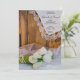 Convide convidados para a sua próxima cerimônia informal, mas elegante, de março, abril ou maio de casamento e recepção com o encantador Convite para Casamento Rustic White Tulips Country Barn. Este convite nupcial casual e personalizado para fazendas ocidentais apresenta uma fotografia floral tênue de um buquê de flores de tulipas brancas, colar de pérolas brancas, véu branco de brasa e lenço vintage aparado de lenço branco com fundo de madeira marrom. Uma ideia ou inspo perfeito para o seu evento relaxado de celebração do celeiro. Disponível como um convite impresso para envio por correio ou como um download digital para fácil compartilhamento digital online.