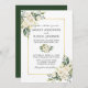 Watercolor Ivory White Floral Greenery Wedding Cartão de Convite para Casamento inclui rosas brancas de creme de marfim e verde botânico. Quadro Dourado, Fundo Verde